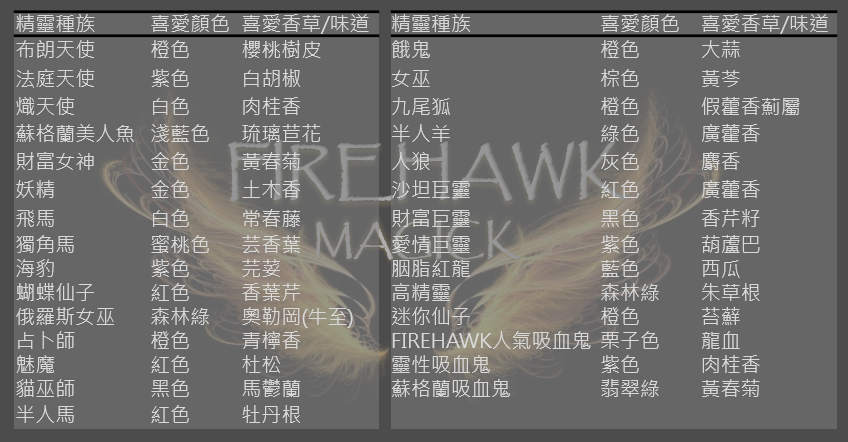 (由於精靈種族眾多,因此我們只列出一些FIREHAWK人氣精靈精靈。)