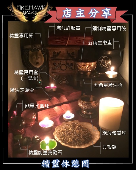 早陣子熟客 C小姐突然問及放置精靈的好地方,她希望力求完美地給精靈一個更舒適的安樂窩(她已擁有約7-8位精靈,屬於資深擁有者)。因此,店主與她分享了自己的精靈祭壇。當然,你未必需要把你的精靈設置到與店主一模一樣,給你的精靈一個小空間,讓它們感到你的重視和愛護就已經很足夠。