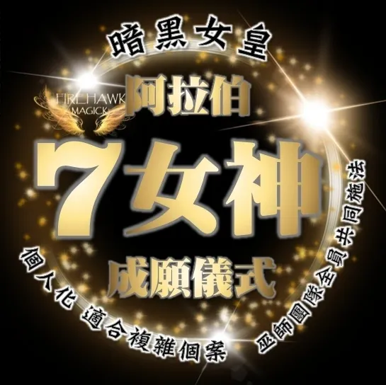 此儀式由暗黑女皇及其團隊全員共同施法;歷時三晚的儀式將為你打破一切障礙,突破過去難關,實現你所想。在儀式過程中,暗黑女皇將借助阿拉伯7女神的幫忙使魔法能量達至高峰。儀式適合全範疇願望,即使是複雜個案亦同樣適合。