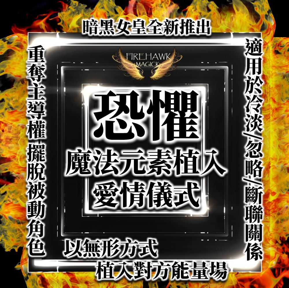 暗黑女皇再度為你帶來嶄新力量 – 此儀式以「恐懼魔法元素植入」為核心,將「失去你」的原始恐懼深層注入對方的潛意識與能量體之中。當儀式完成後,對方將漸漸無法忽視你的存在,內心被焦慮與依戀牽引,每一分情緒都被「害怕失去你」的念頭左右,使你逐步佔據其情感與行動的核心位置。